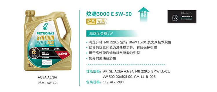 馬石油炫騰3000潤滑油, 其全合成配方適用于現代技術引撃。獨有°coolTechr‘酷泰·科技,強化油膜分子鏈,使前同滑油在各種駕駛條件下都能保持出色的高溫穩定性, 同時預防引撃局部